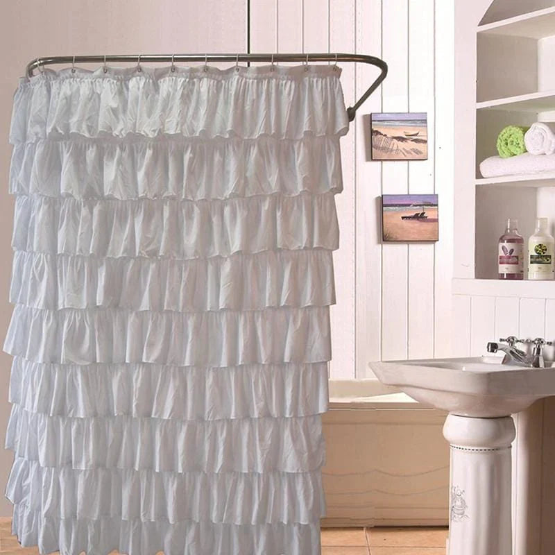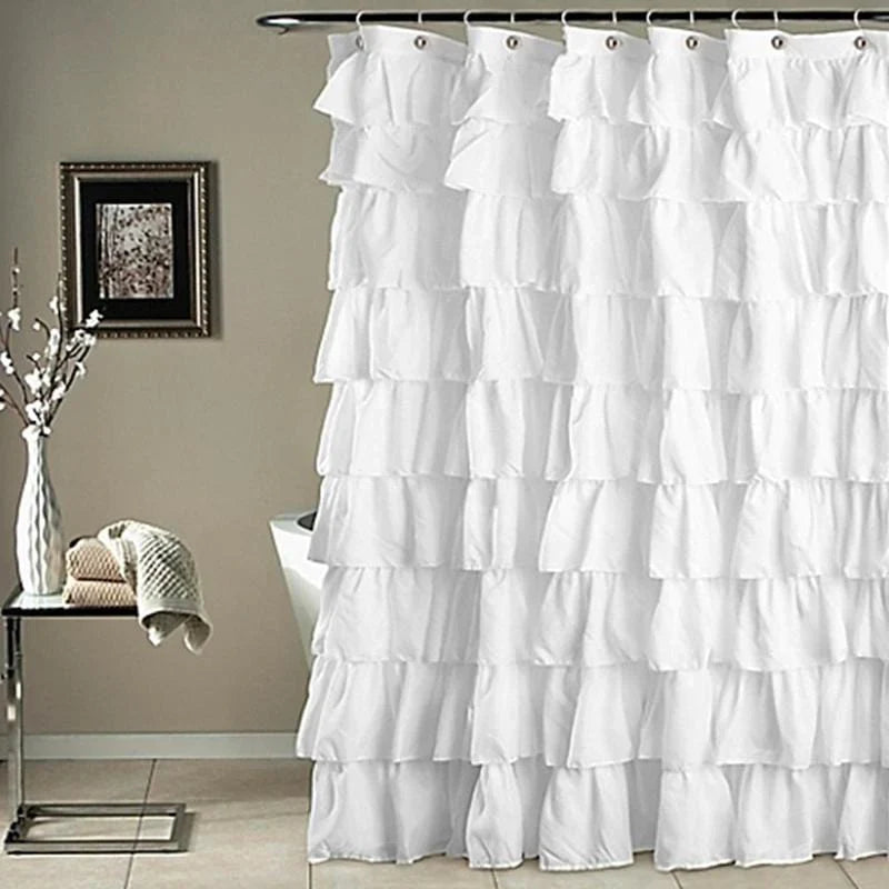 Your bathroom will look absolutely incredible with this Emilia Ruffled Semi Sheer Shower Curtain. Those Semi-sheer and frilly ruffle details add a feminine touch as well as an eye-catching texture to instantly brighten the look of your space.