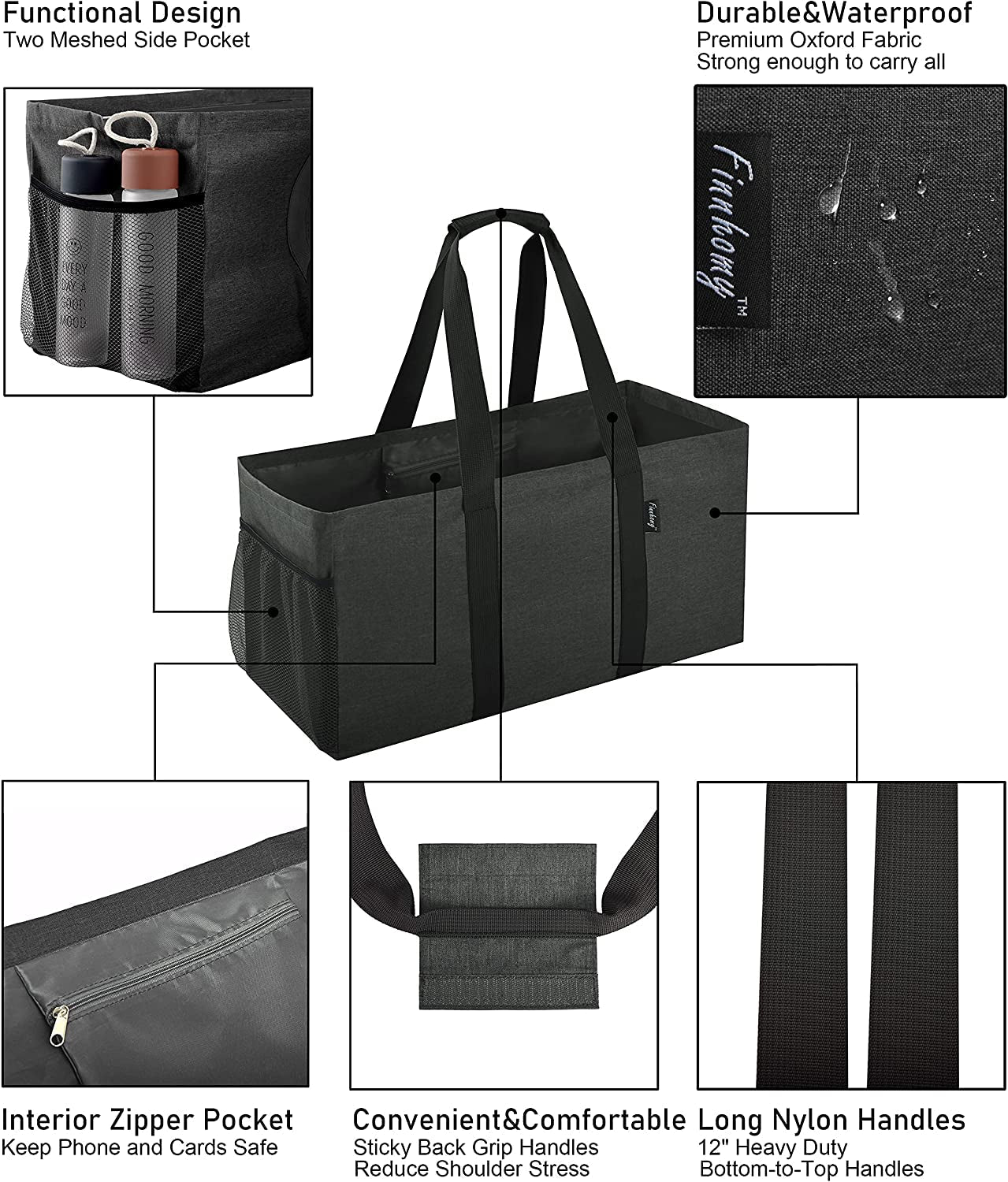 Finnhomy 42L Extra Large Utility Tote Bag, Oxford Fabric Storage Bag with Handles and Pockets, Reusable Folding Grocery Bags