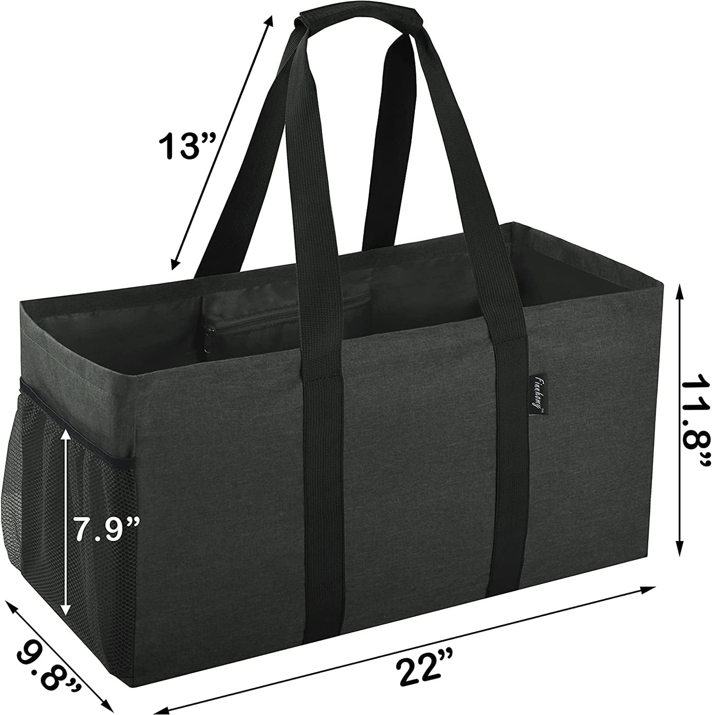 - 1. EXTRA LARGE -This oversized tote bag is about 22''x12''x10'' when fully opened and two durable sturdy handles make it easy for carry with heavy goods. The tote bag provides ample shopping and storage space (11.5 Gallons). Two exterior side pockets extend your storage space and can help you realize small items organization needs. In addition, we also have an inside pocket with zipper which allow you to put personal items like keys, cell phone, cards etc. and make them safe.