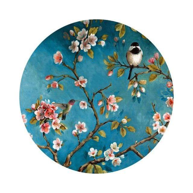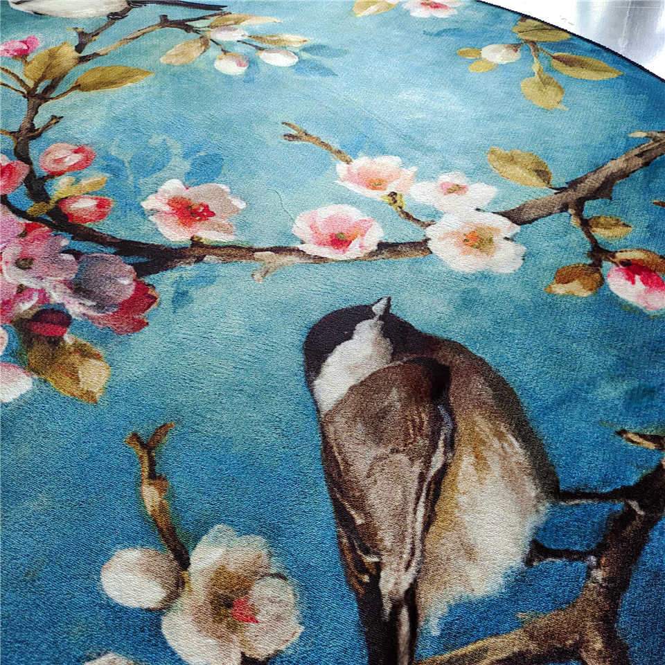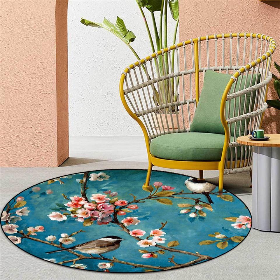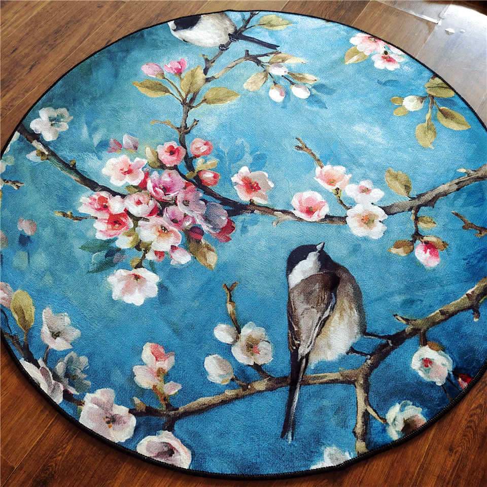 Floral And Birds Round Rug