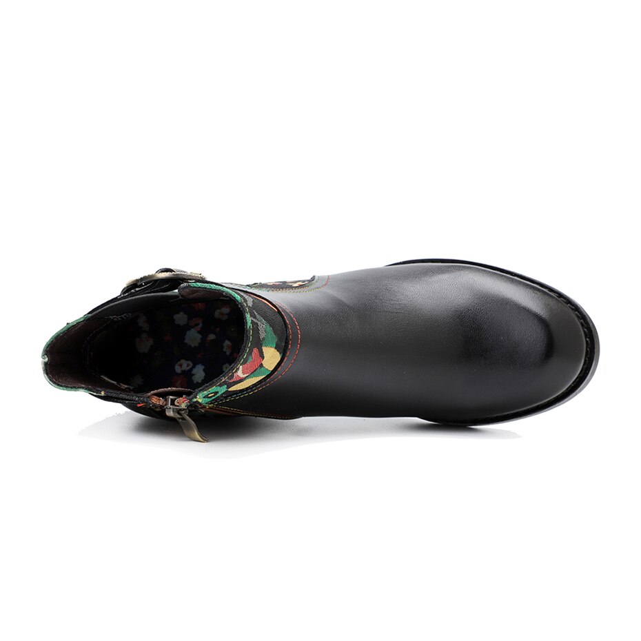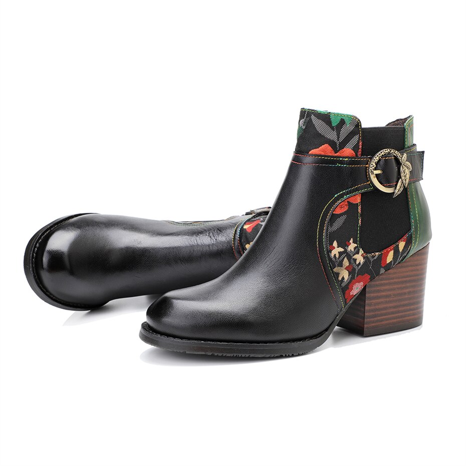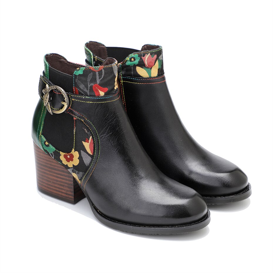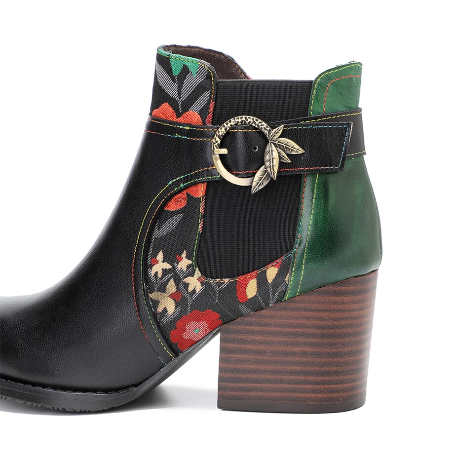 Introducing our elegant and stylish Floral Buckle Chelsea Boots, the perfect addition to any fashion-forward wardrobe. Crafted from high-quality materials and designed with a comfortable and durable sole, these boots feature a striking floral buckle detail that adds a touch of femininity and sophistication to any outfit. Whether you're dressing up for a night out or adding a touch of flair to your everyday look, these boots are sure to impress. With their versatile design and timeless appeal, our Floral Buckle Chelsea Boots are a must-have for any fashion-savvy individual.