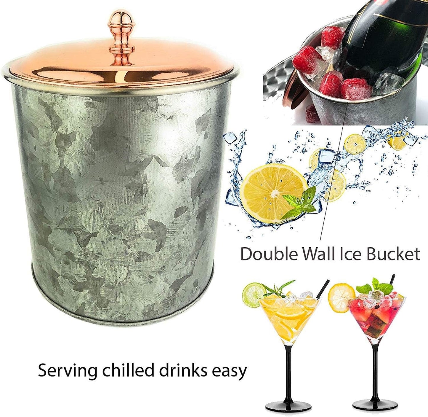 - KEEP YOUR ICE LONGER: Always have Ice Cubes available. This Rustic Heavy Duty Double Walled Ice Bucket will keep your Ice Solid for Longer and also Prevent Moisture Forming on the Exterior of the Canister. Not being too Large Makes it a Great Addition to your Bar Accessories. PLEASE CHECK SIZE AND DETAILS PRIOR TO ORDERING TO ENSURE THIS PRODUCT MEETS YOUR EXPECTATIONS
