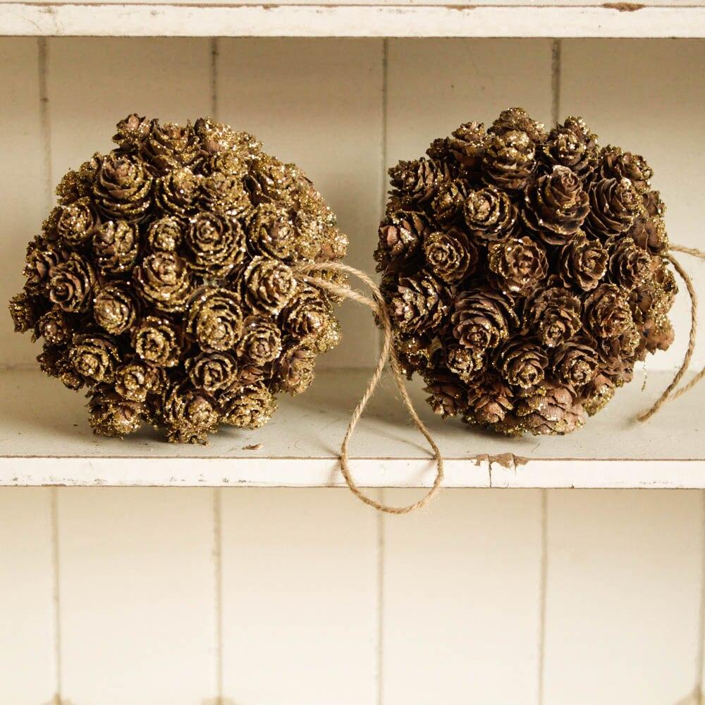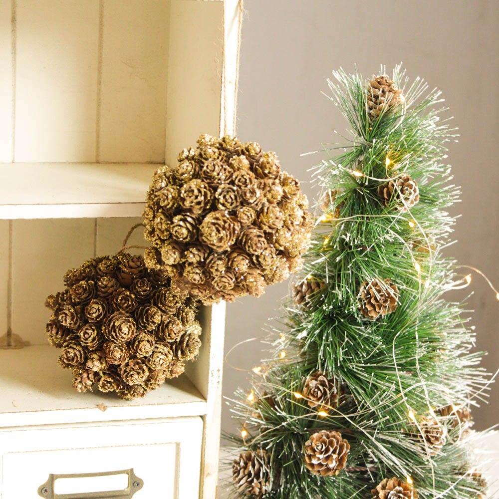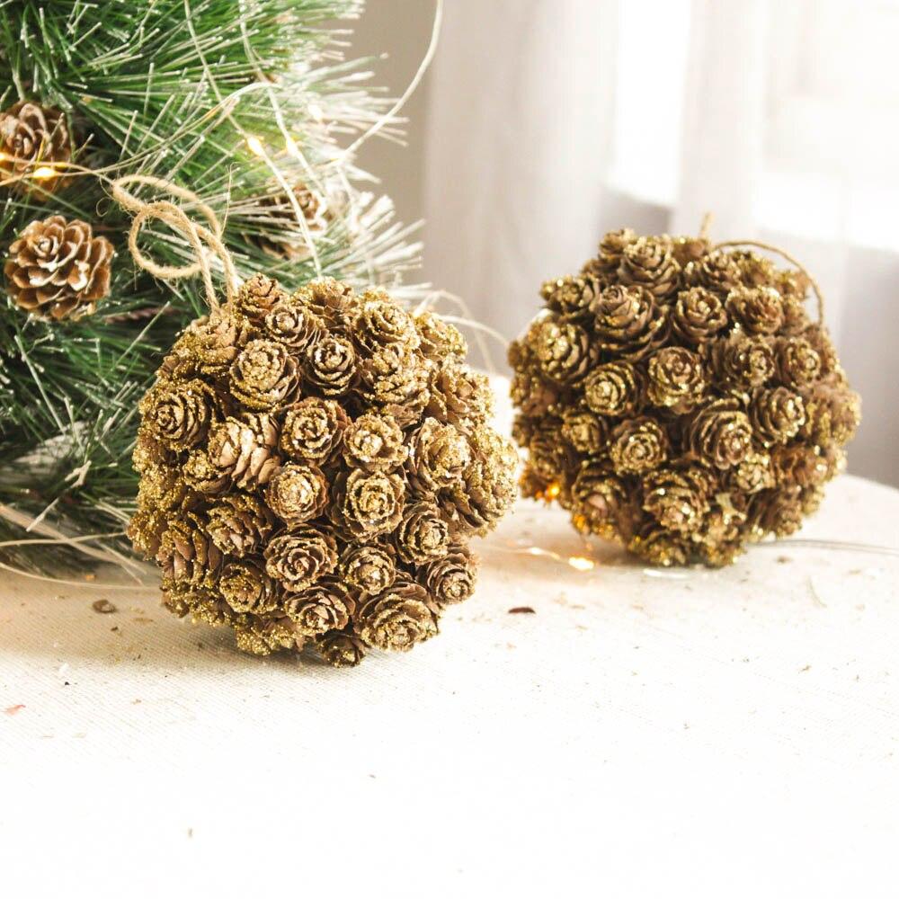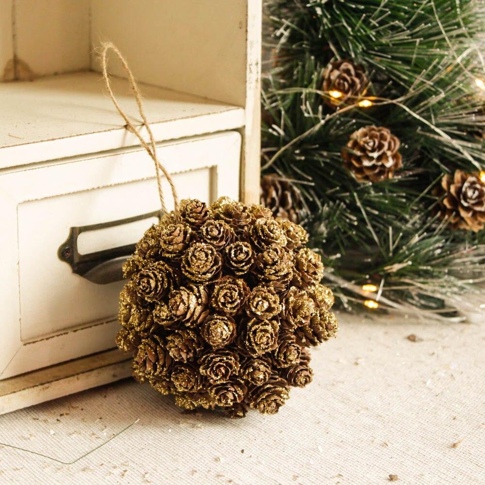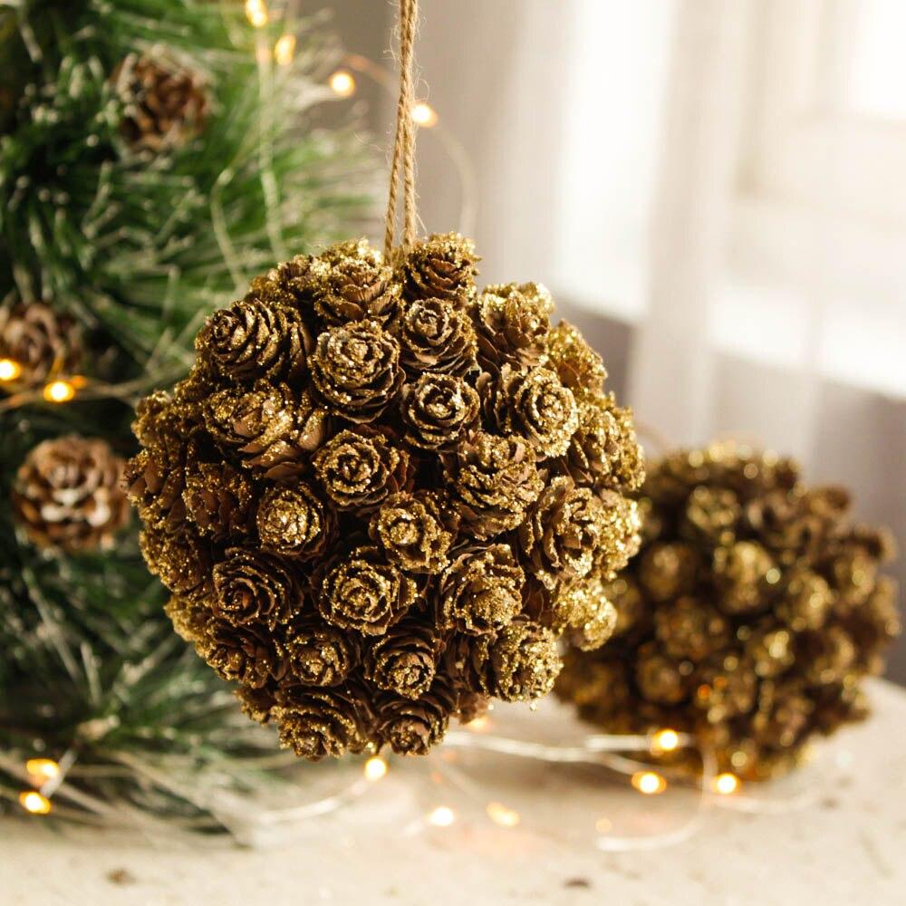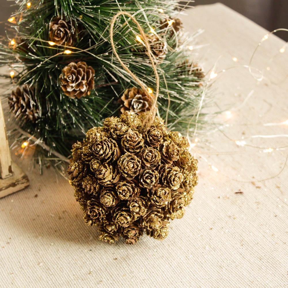 Get this Gold Pine Cones Ball Christmas Tree Decor, which features a gold-toned vintage pine cone design. With this stunning decorative piece, your Christmas decor will have an eye-catching element.