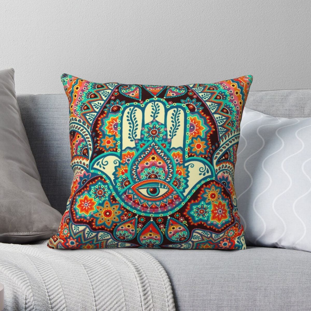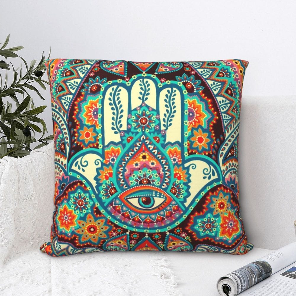 This Hamsa Hand Cushion Cover for couch bed sofa with zip covers is an easy, fun way to add a pop of color or bring new life to any room in your home or office is with the beautiful pillow. Dress up your bed, sofa, or lounger with this decorative design art pillow.