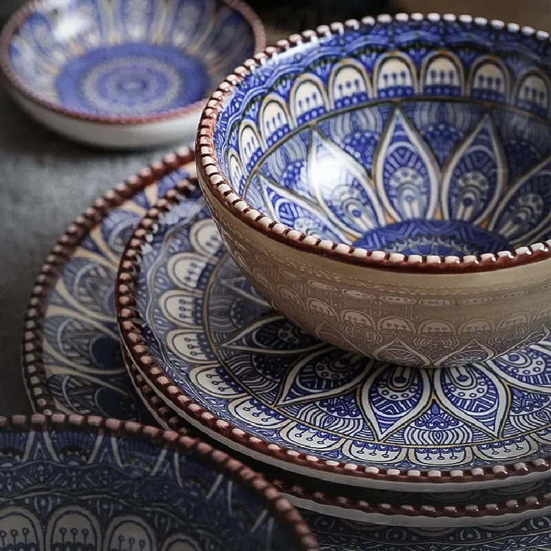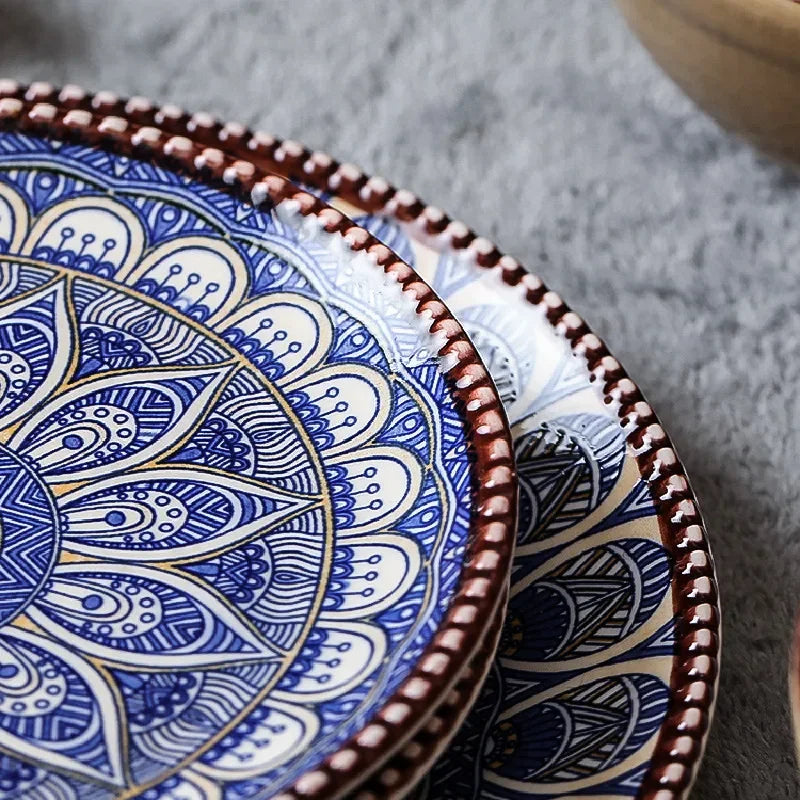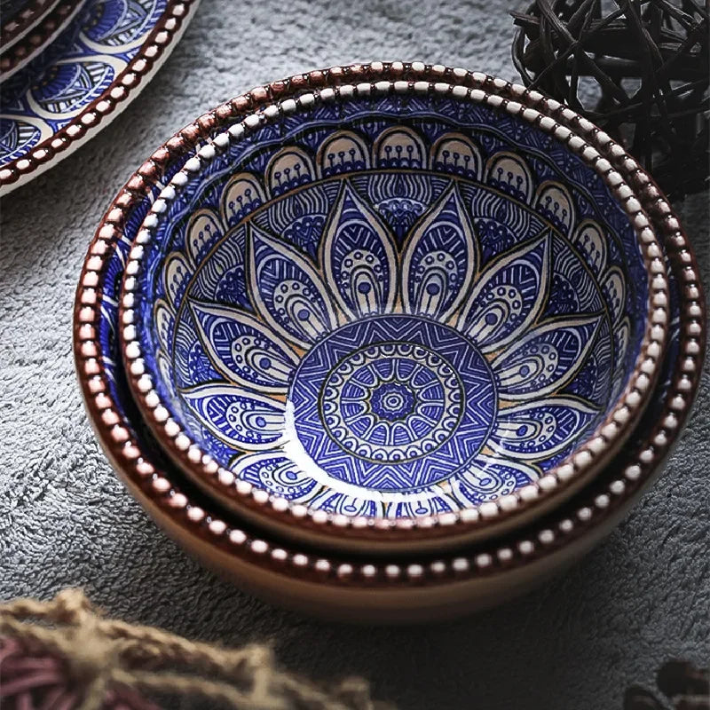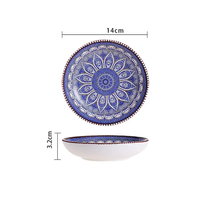 Add a touch of bohemian charm to your dinnerware with our Hand Painted Bohemian Notes Plates & Bowls! These ceramic pieces are hand-painted and fired at a medium temperature, ensuring superior quality and durability. Not only are they resistant to cracks, stains, and scratches, they are also lead-free and non-toxic. The unique design of these plates makes them a versatile addition to your kitchen. Use them to serve food, display as decorations, or give as a thoughtful gift. And when not in use, they stack together for convenient storage. Easy to wash and care for, these plates and bowls will elevate your dining experience.