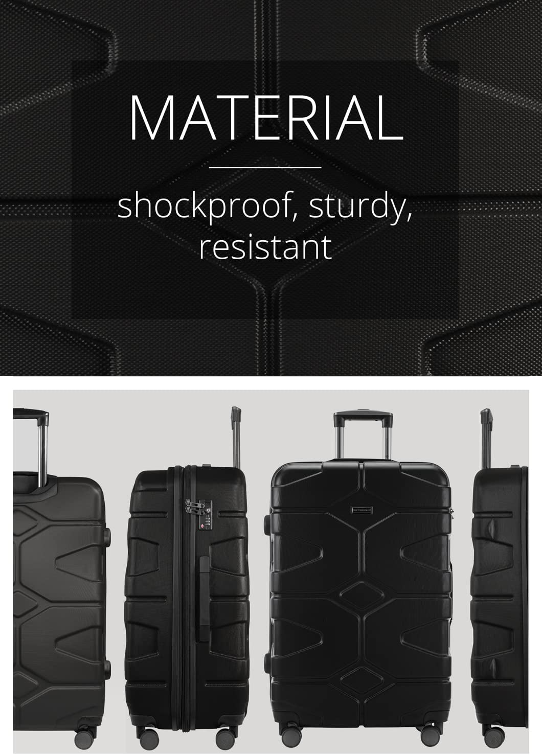- The hard shell is made from matt ABS, a very light plastic that is extremely robust and stable, highly shock-resistant and unbreakable.