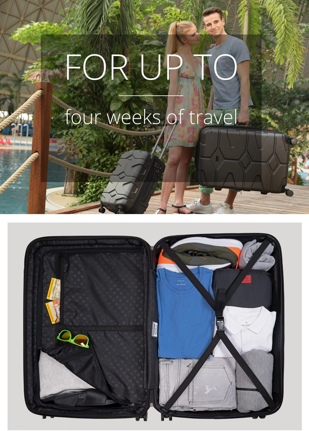 - "X-Kölln" Large esuitcase: with its 76 x 49 x 33 cm , this hard shell luggage is expandable up to 120 Liter and will be the ideal companion for extended travel
