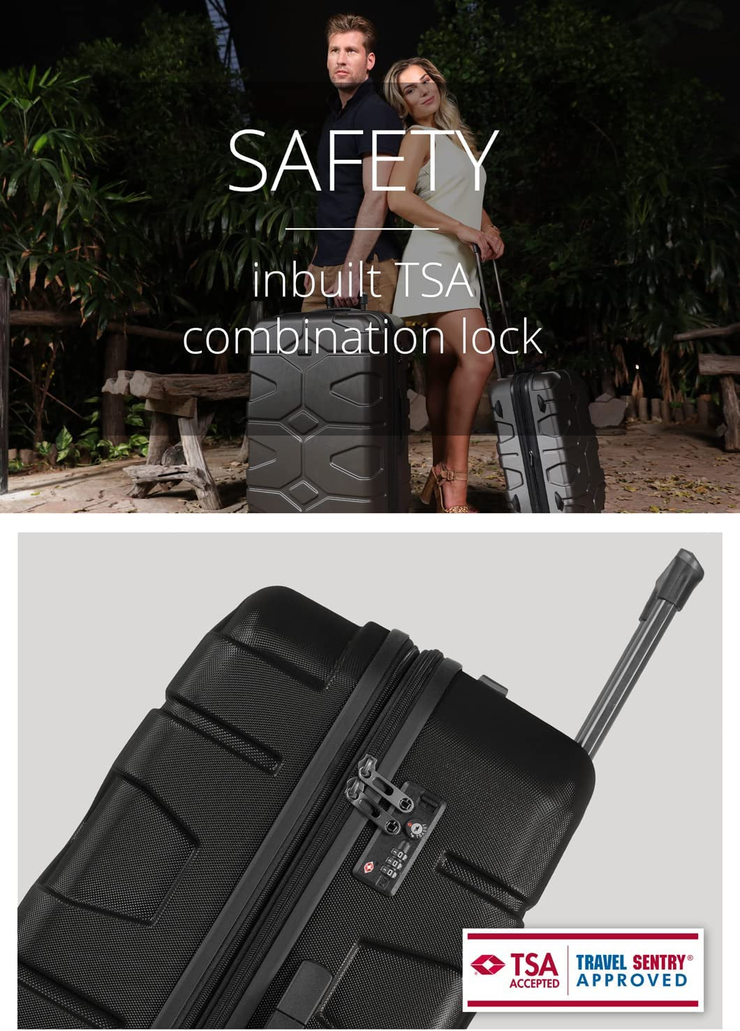- The TSA lock is highly recommended for travel to the US: the suitcase can be opened and closed by the airport security staff with a special key; thereby, damages due to a forced opening will be avoided. Of course, the zipper can be locked and protects the contents from unauthorized access.