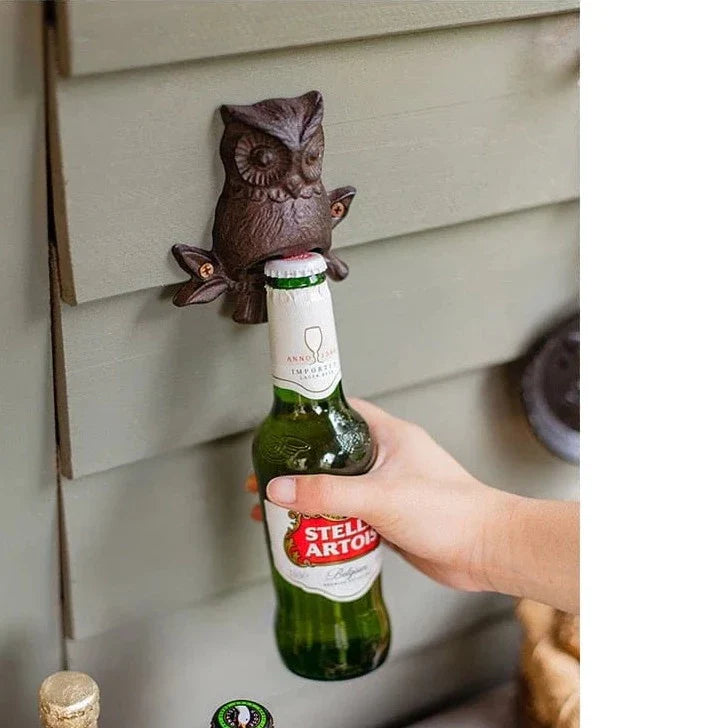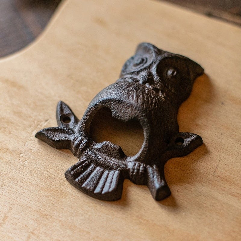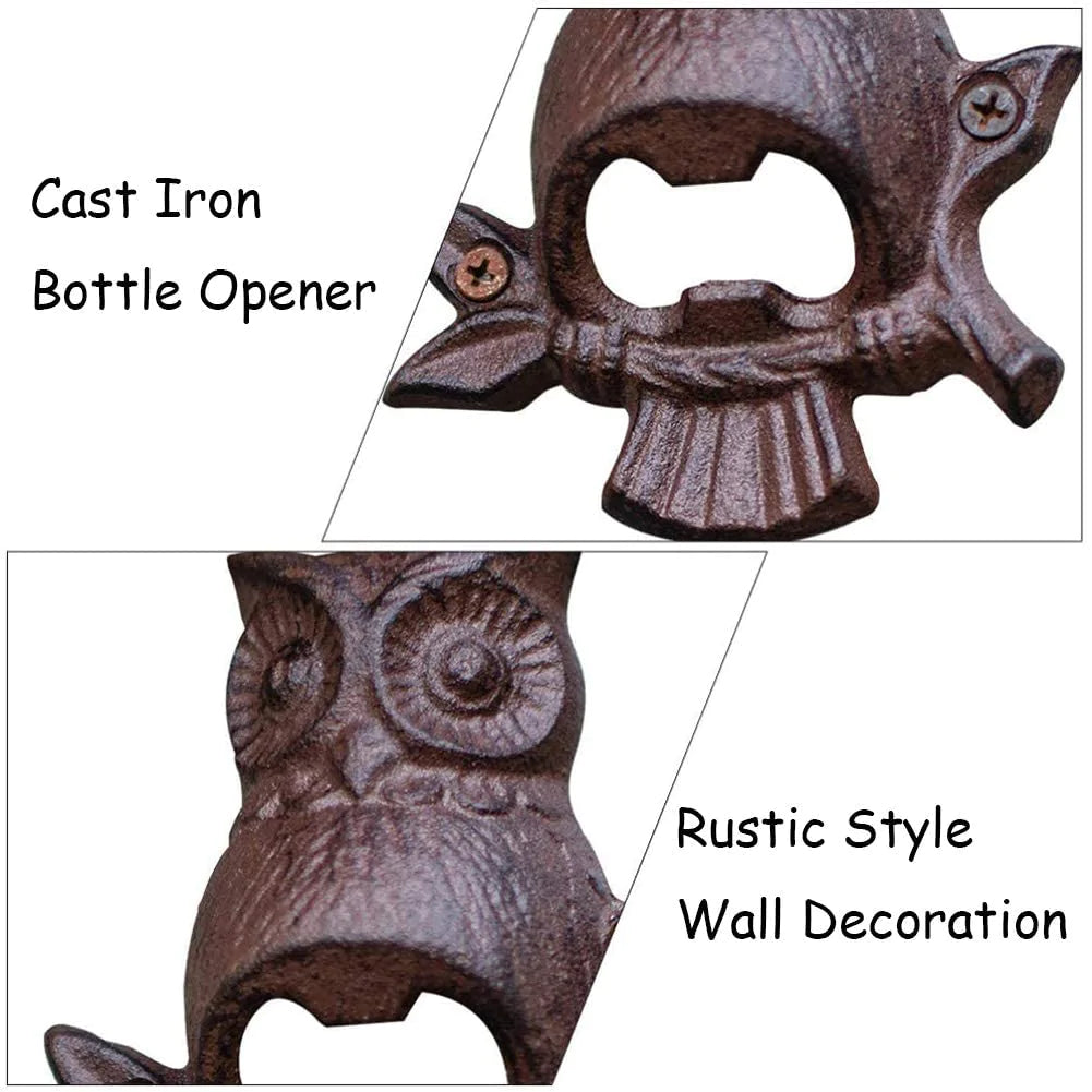 This Unique Iron Owl Beer Bottle Opener is the perfect opener for most bottles. The wall-mounted design makes it an eye-catching wall decoration. Made of superior heavy duty cast iron, durable, single mold cast iron and a unique antique look, this cool beer bottle cap opener is made to last for many years to come.