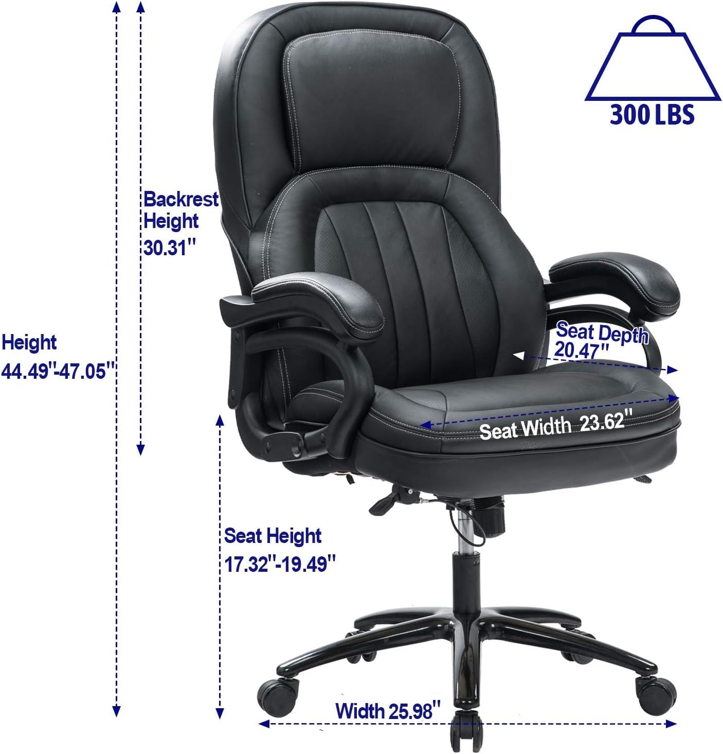 - SIZE: Leather Office Chair Overall 3D: 25.98*25.98*44.49"-47.05"(H) Seat Height: 17.32" - 19.49" Cushion Depth: 20.47" Seat Width: 23.62" Back Length: 30.31" Back Wide: 24"