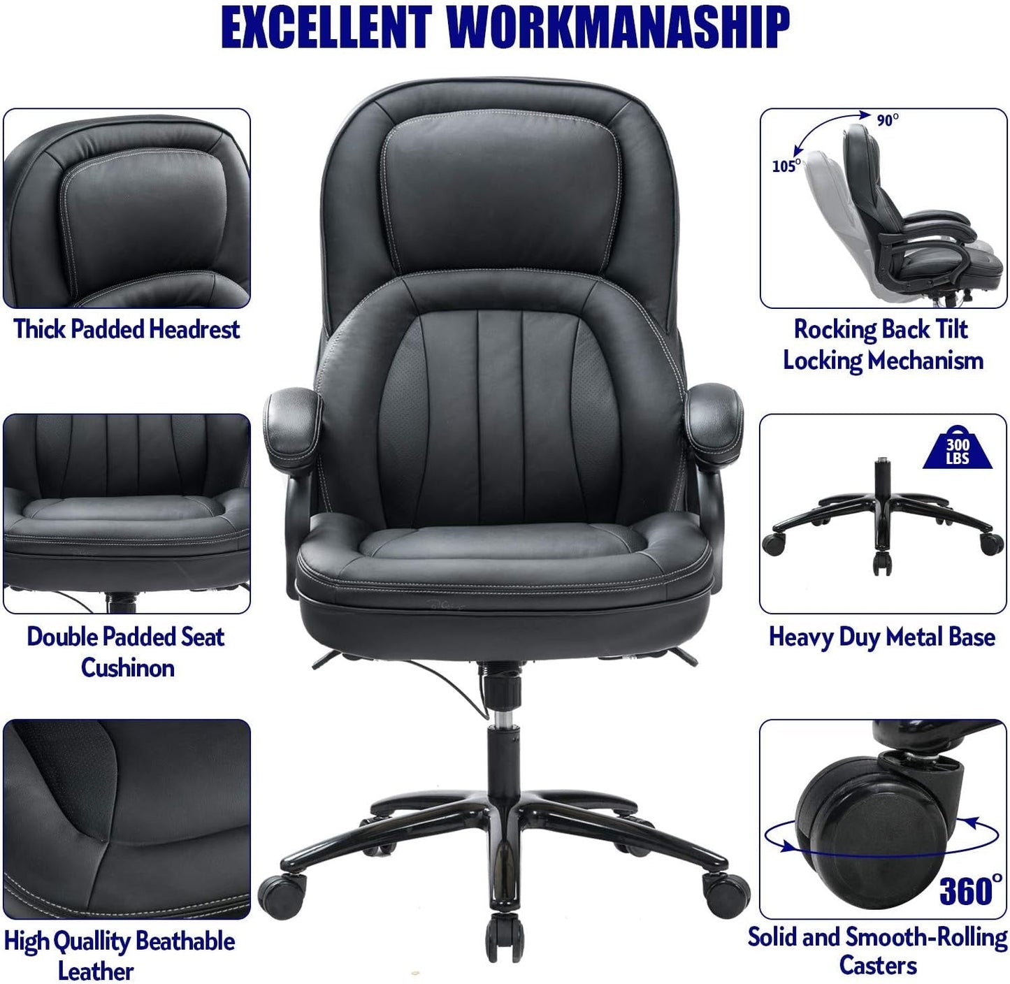 KCREAM Big and Tall Office Chair for Heavy People, Rocking Executive Office Chair Lumbar Support for Desk Chairs with Wheels Lazy Boy Leather Chair Work Chair Sillas Comfortable Chair (9118)
