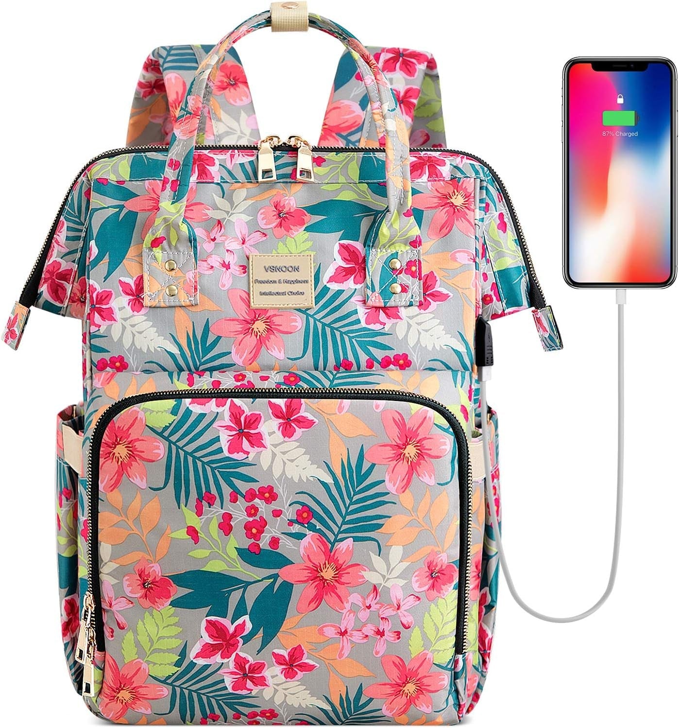 Laptop Backpack for Women, 15.6 Inch Laptop Bag with USB Charging Port, Water Resistant Travel Backpack for Women Work Nurse/Teacher Casual Daypack, Purple