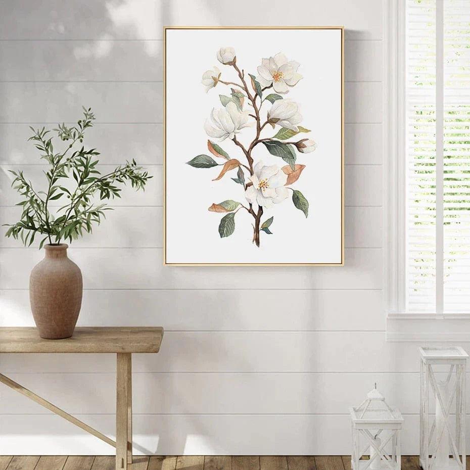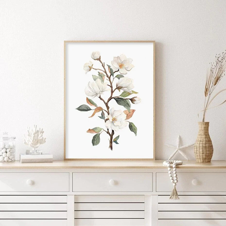 Its stunning simple design makes it blend well with any home decor or color scheme. Hang this Magnolia Bloom Blossoms Canvas Wall Art using putty, double-sided poster tape, or thumbtacks in any room, your guests will surely stop at their tracks appreciate your dainty minimalist poster.