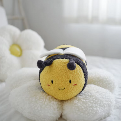 The plushy bee features an adorable design with soft, huggable material, making it both a charming decoration and the perfect cuddle companion for cozy moments.