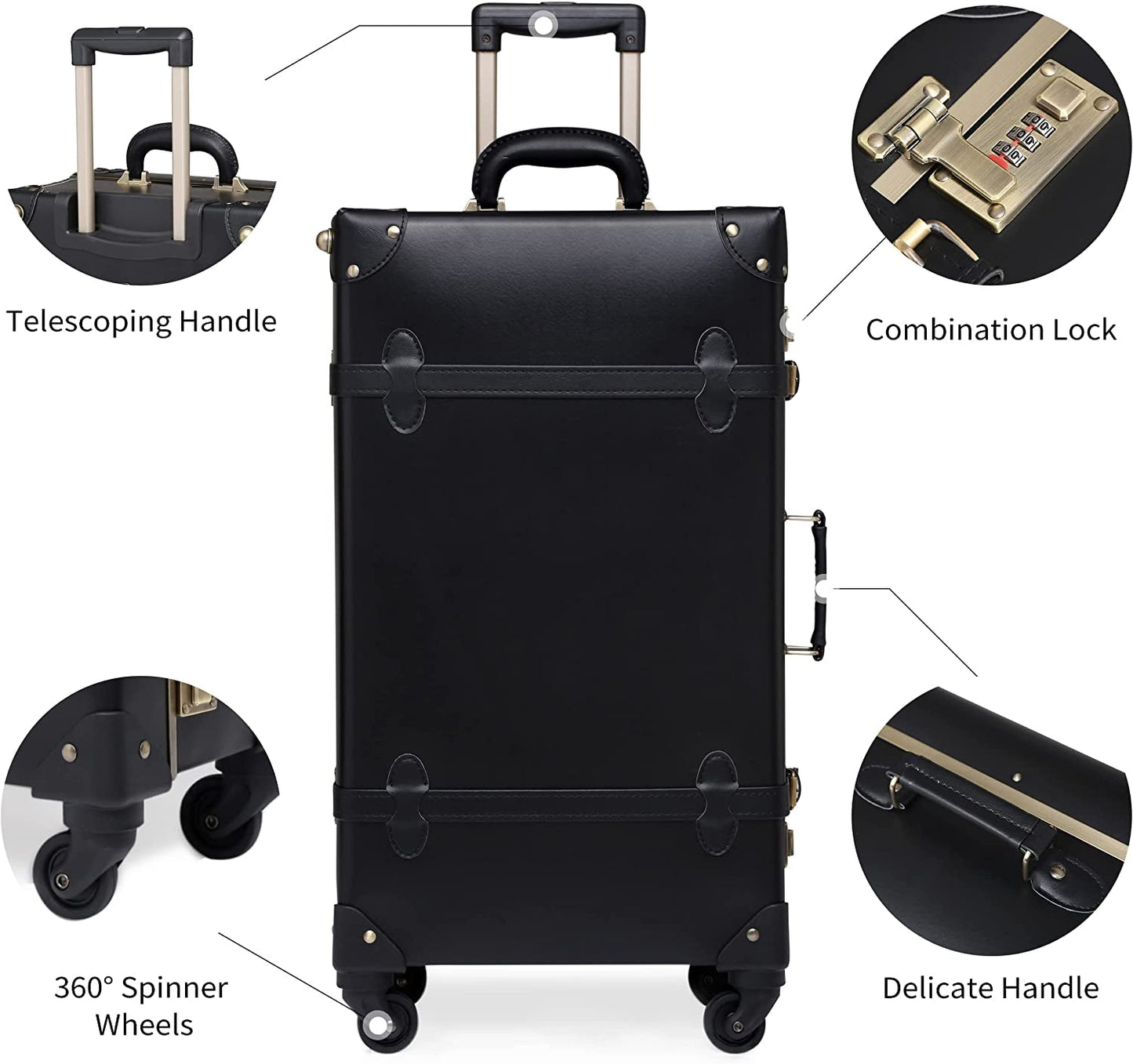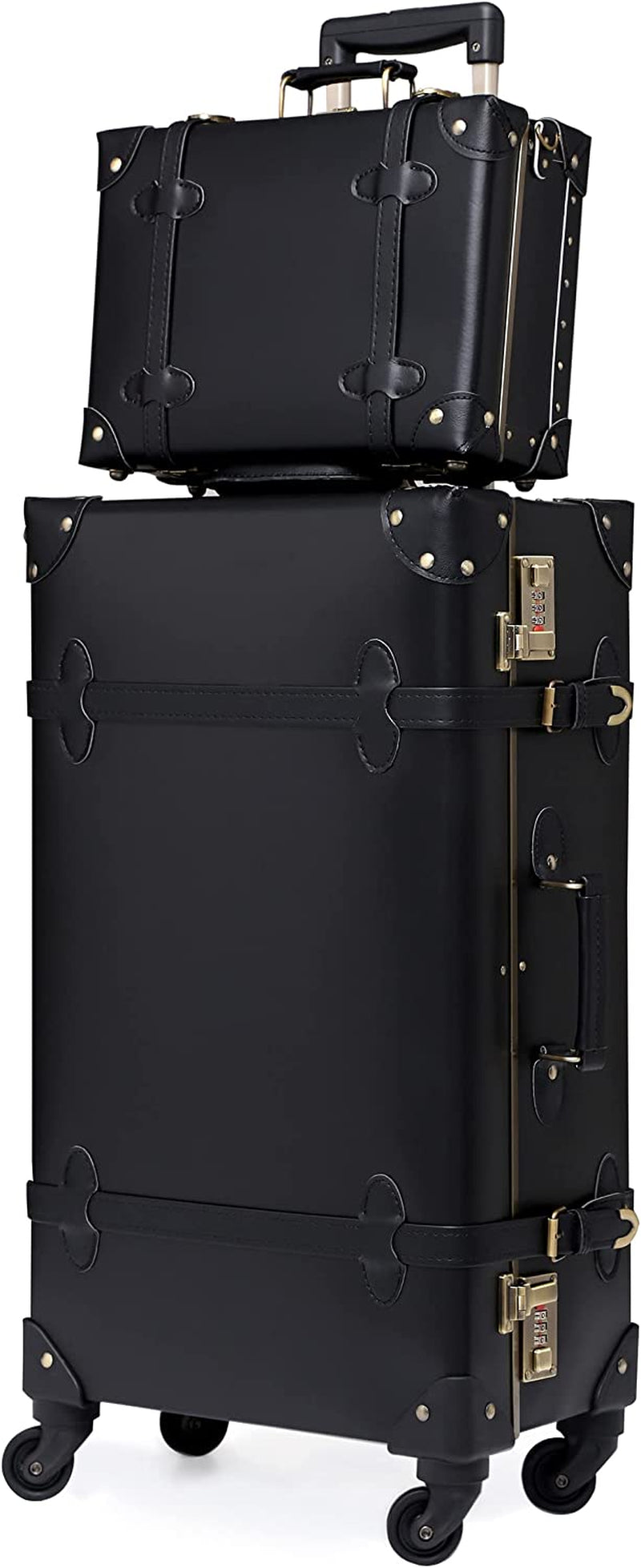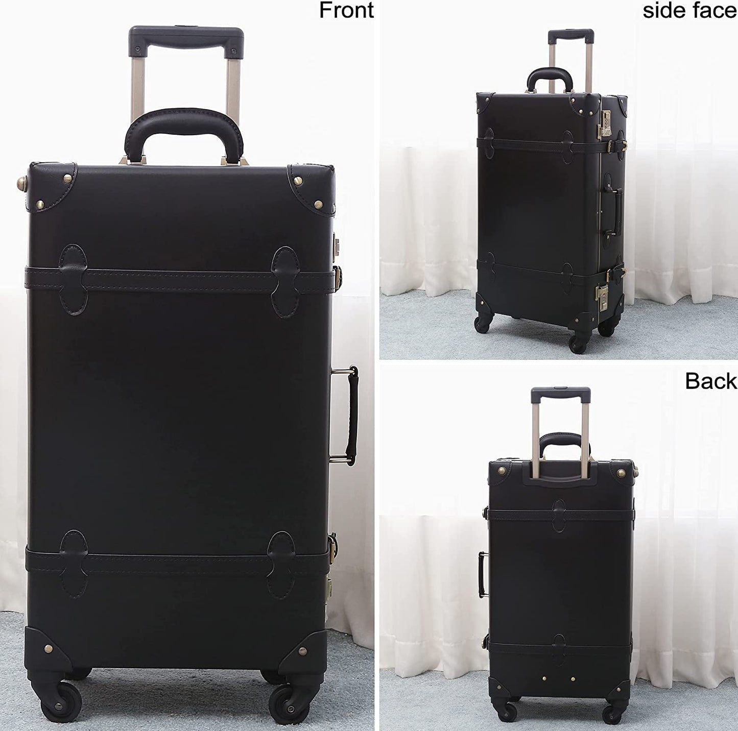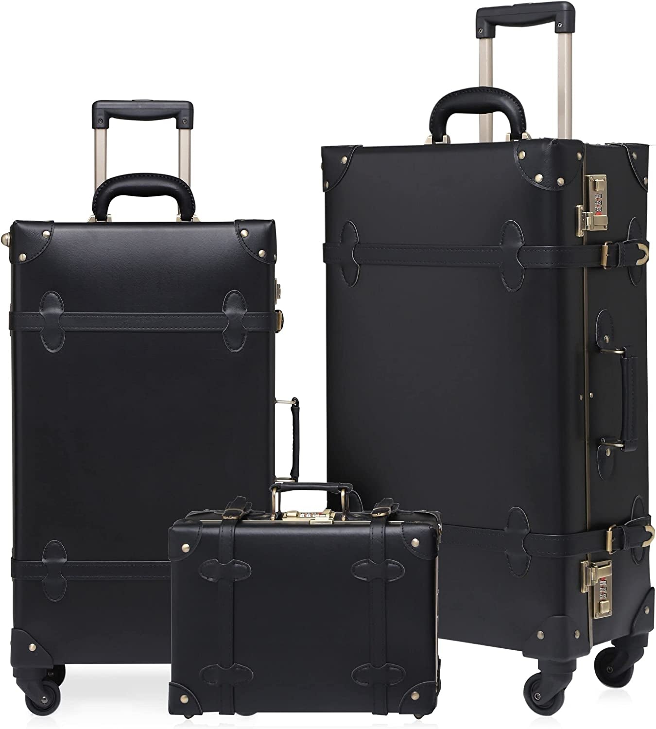 Urecity Vintage Luggage Sets of 3 Piece - Hardside Lightweight Spinner Suitcases - Retro Travel Set Includes under Seat Train Case, 26"+20"+12" (Black)