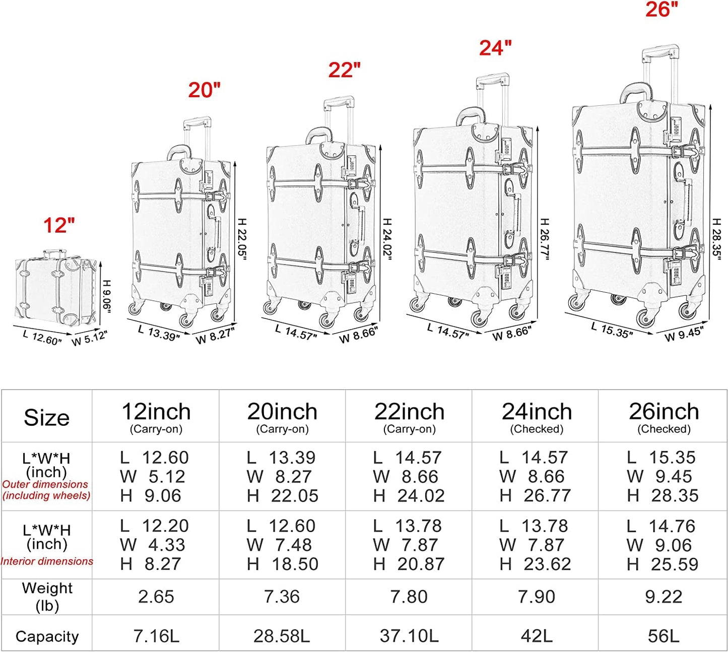 - 3 piece of vintage look luggage set: 26" check-in luggage, 20" carry-On luggage, 12" small suitcase