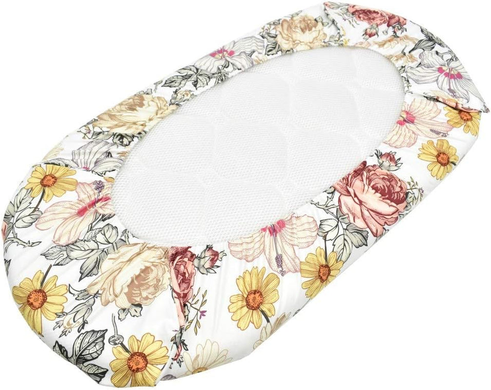 Winmany Baby Floral Bassinet Sheets,Soft and Strechy Basket Sheet Cradle Mattress Changing Pad Cover for Rectangle, Oval,Pram,Hourglass Bassinet Pads (Floral Blooming)