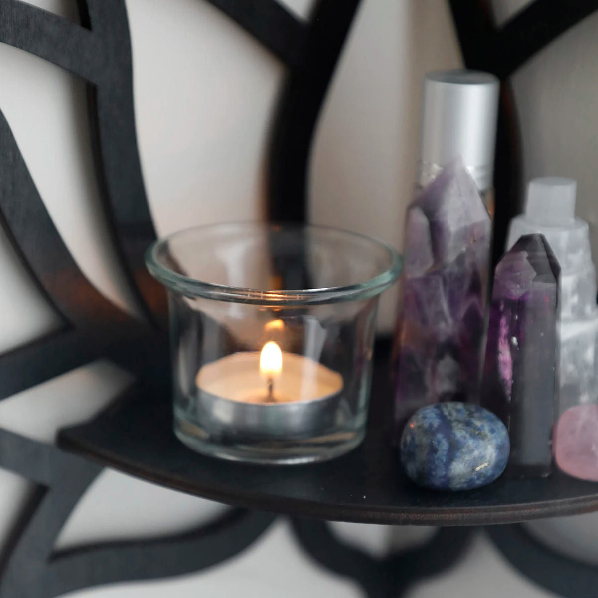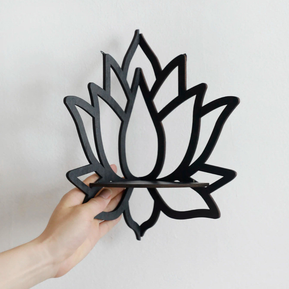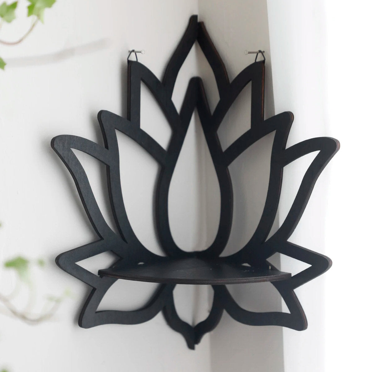 Dieses schwarze Eckregal in Lotusform ist eine atemberaubende Mischung aus Funktionalität und hexeninspiriertem Dekor. Aus Holz gefertigt und so gestaltet, dass es sich harmonisch in jede Ecke einfügt, bietet es den perfekten Platz für Kerzen, Kristalle, ätherische Öle oder andere kleine Schätze. Die offene Blütenstruktur verleiht ihm eine spirituelle, naturinspirierte Note und macht es zu einem anmutigen Akzent in Schlafzimmern, Meditationsräumen oder gemütlichen Leseecken.