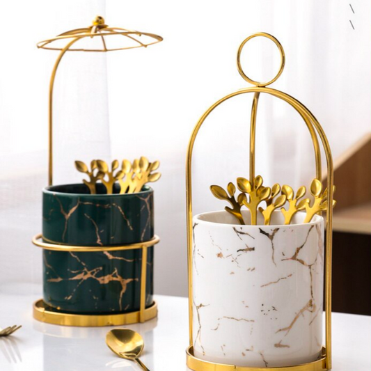 Pot à ustensiles en céramique marbré