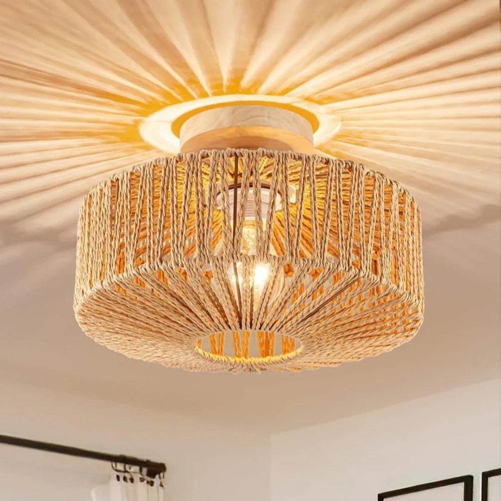 Invitez la chaleur du soleil dans votre espace avec le plafonnier tissé SolHalo , une pièce artisanale alliant charme rustique et élégance contemporaine. Doté d'une structure circulaire en rotin naturel et finement enveloppée de corde de chanvre , ce plafonnier rayonne de beauté naturelle tout en projetant un motif de soleil envoûtant sur votre plafond.
