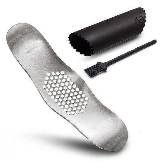 Conjunto de 3 peças: triturador de alho em aço inoxidável e descascador com escova de limpeza