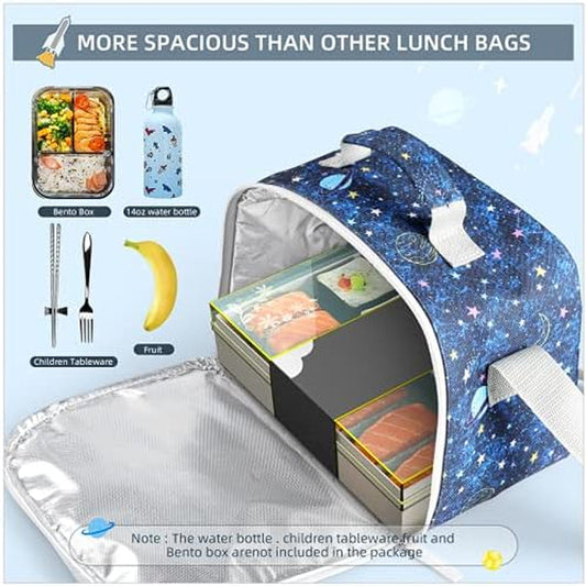 Lancheira infantil isolada, lancheira com alça de ombro, bolso frontal, lancheira perfeita para meninos e meninas, estudantes pré-escolares (azul)